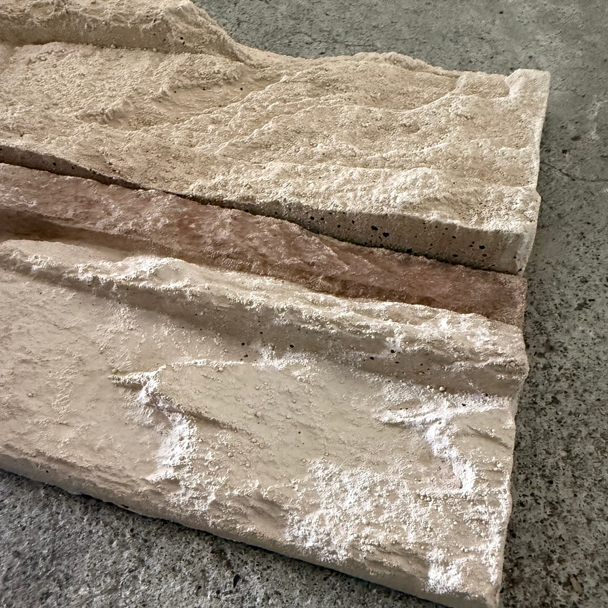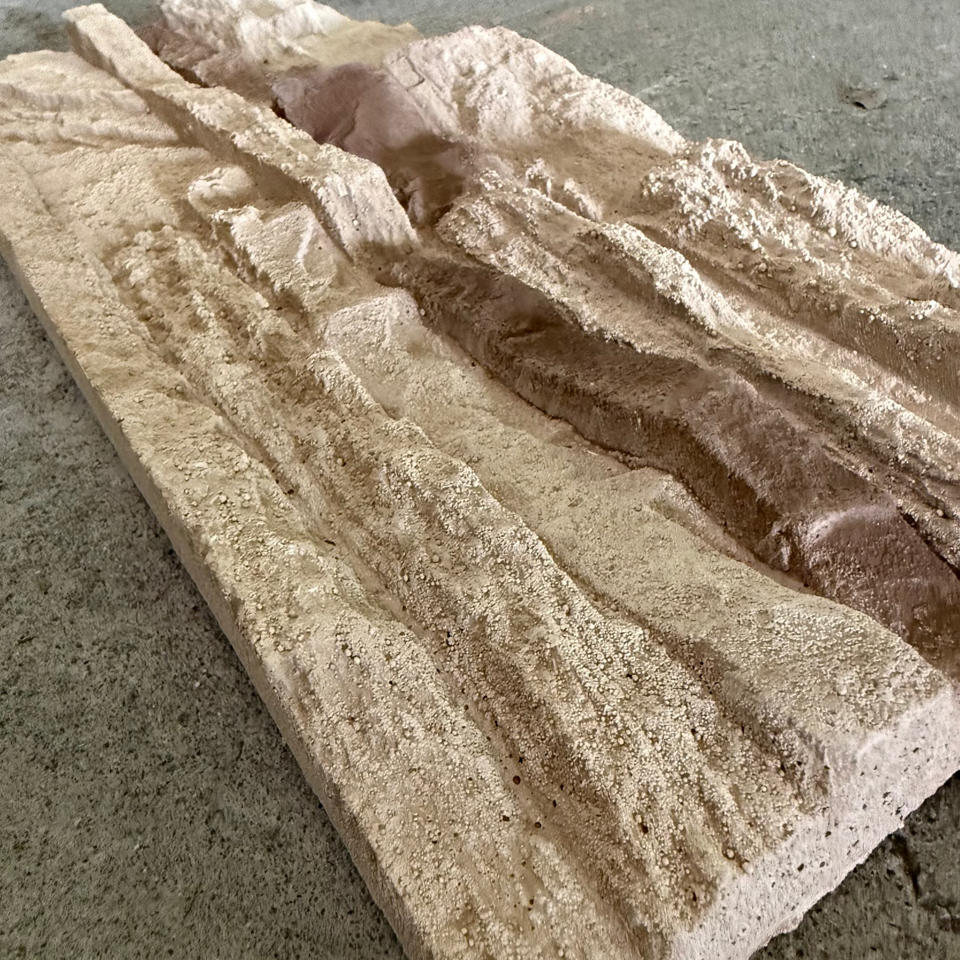 断崖の岩肌を思わせる、大胆な起伏と野趣ゆたかな表情をイメージして作られたタイル。