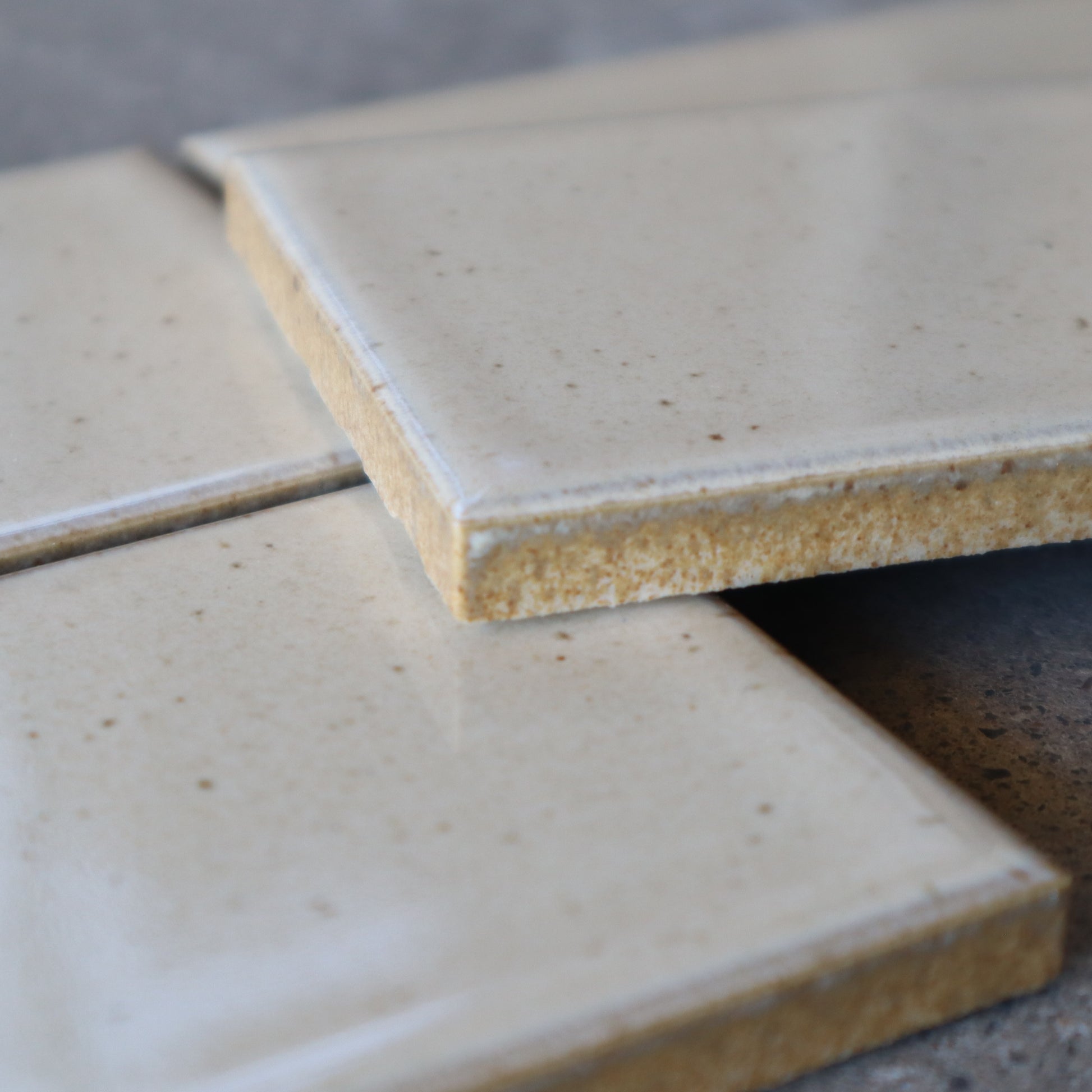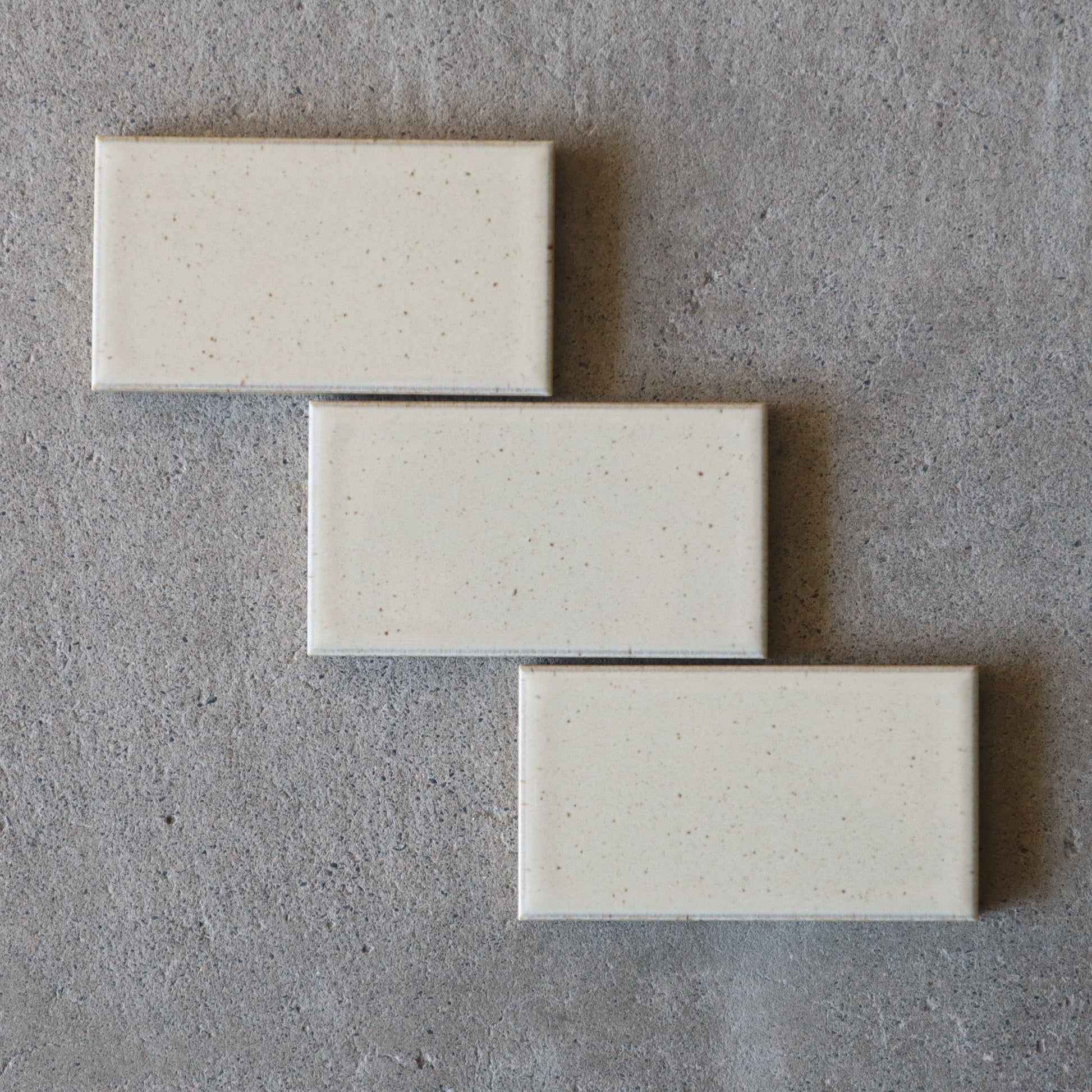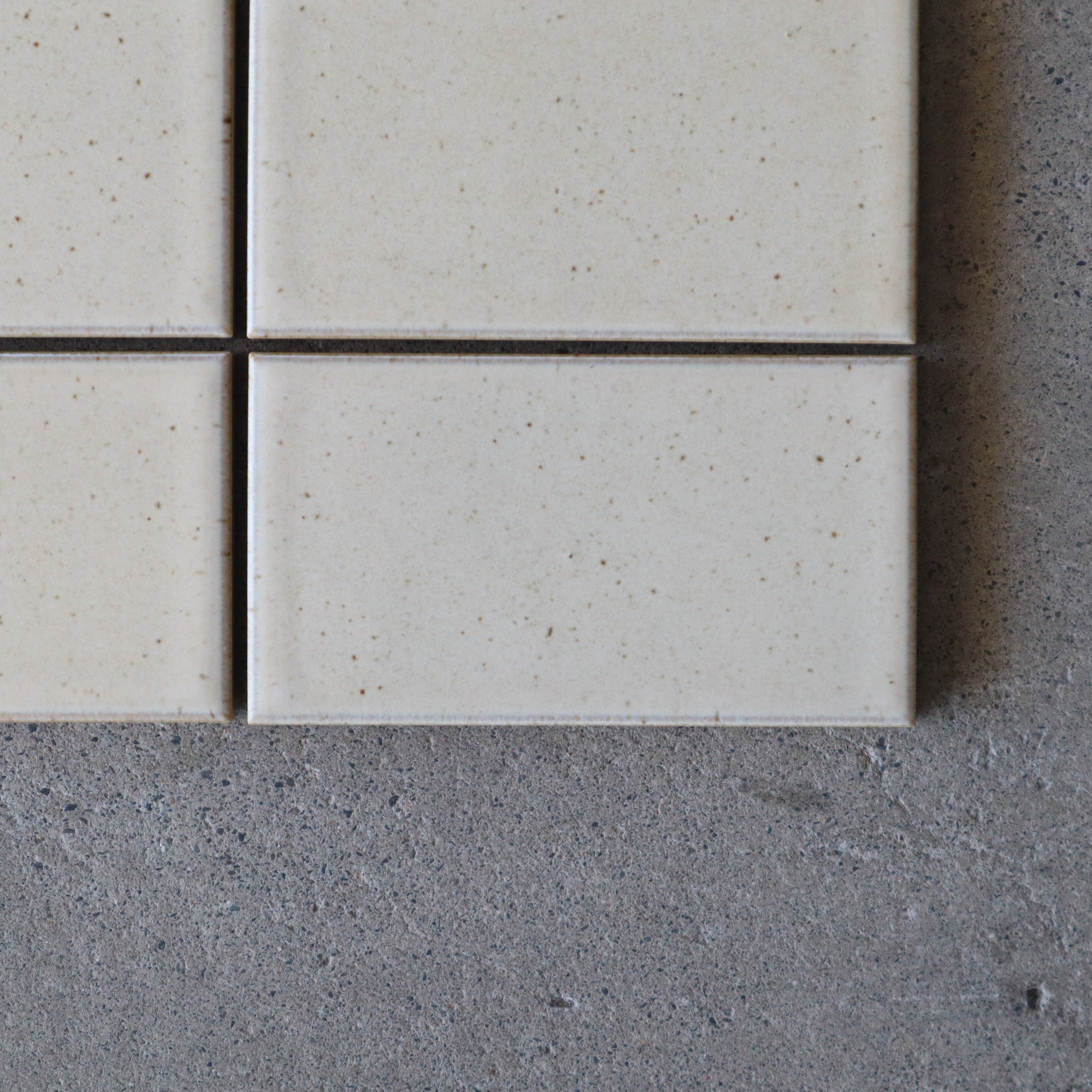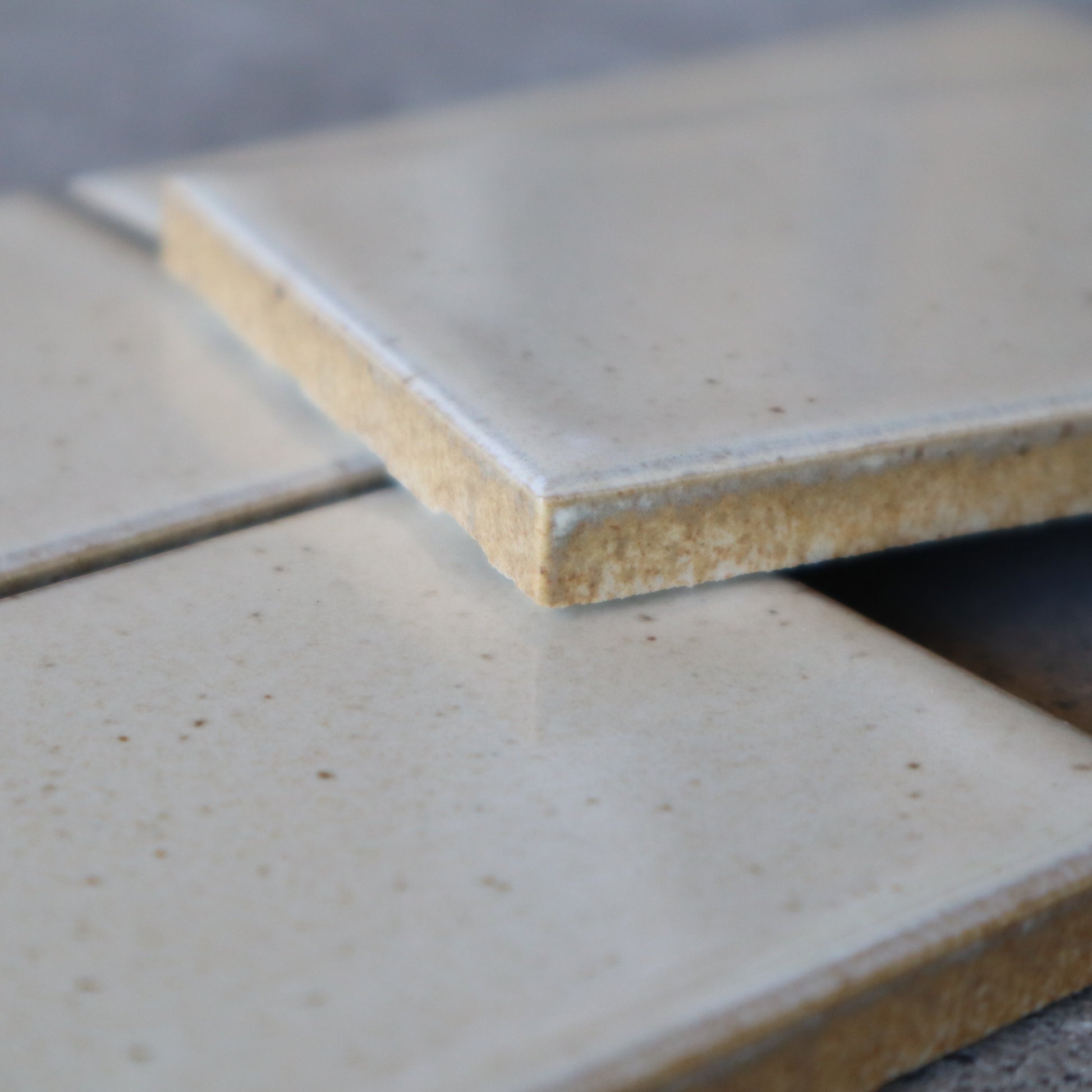 主張しすぎない、けれどどこか可愛らしさのある佇まいは、すっきりとしたシンプルな空間にも、時を重ねたヴィンテージ調の場所にも、自然に馴染みます。また、小口平(こぐちひら)仕様であることも、このタイルの魅力のひとつ。