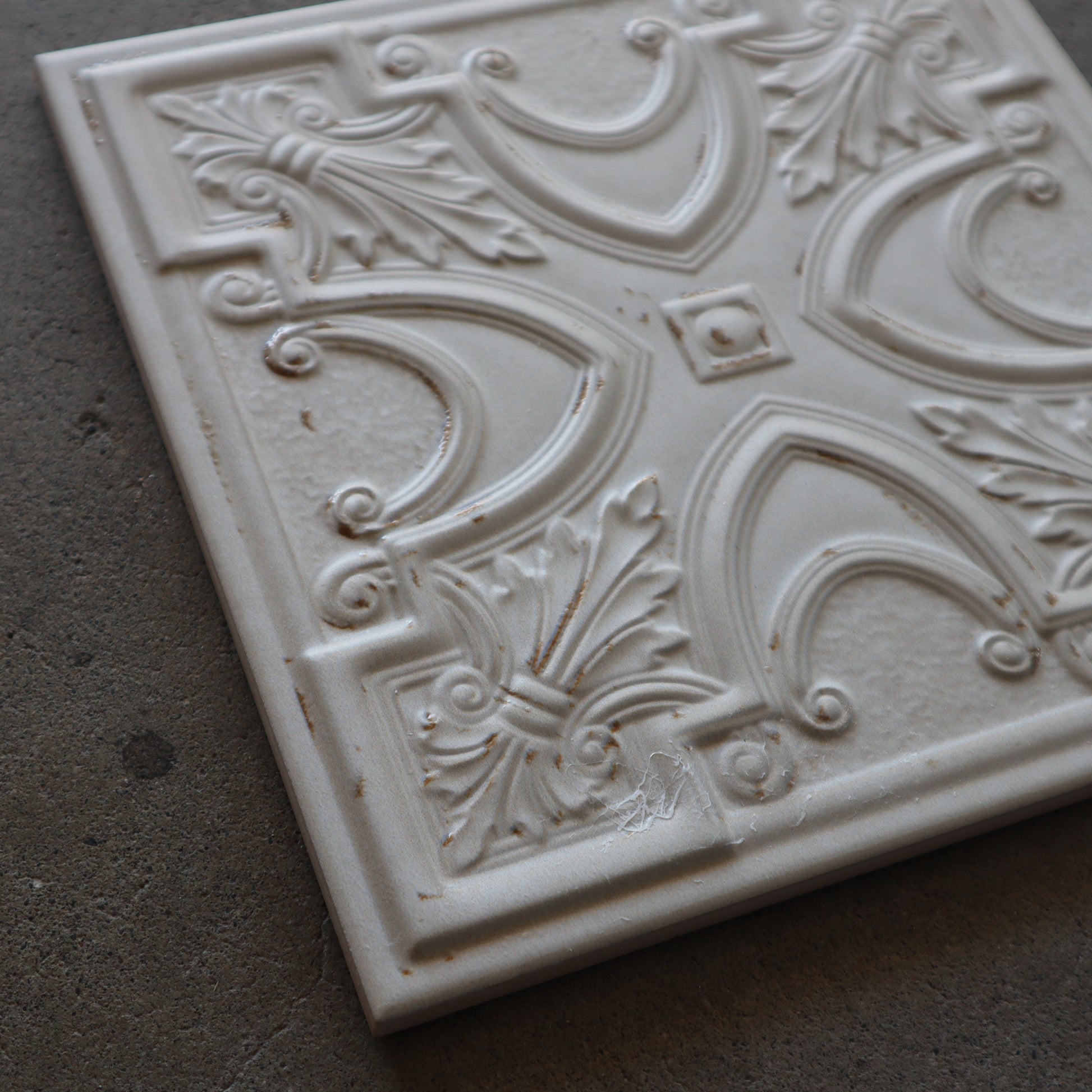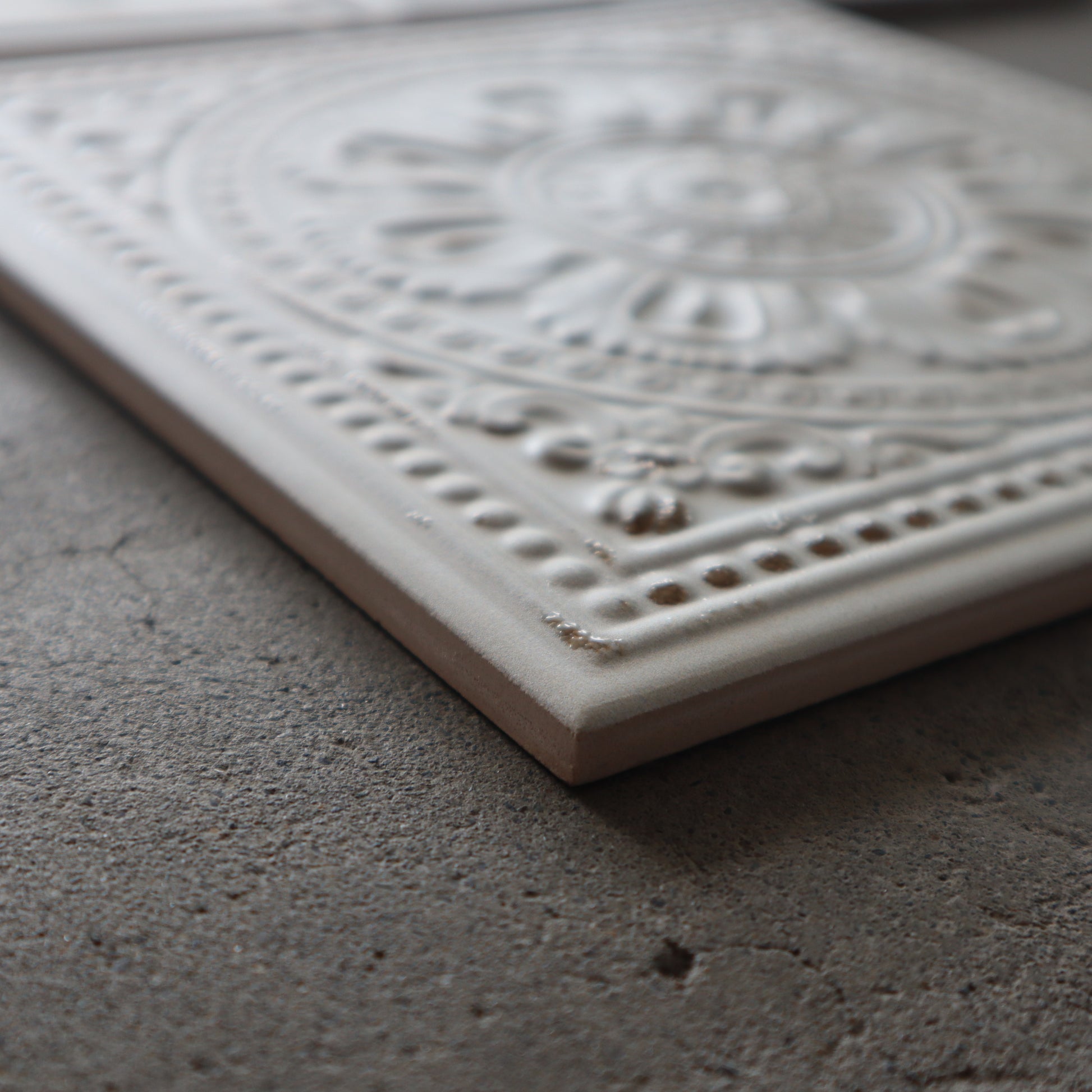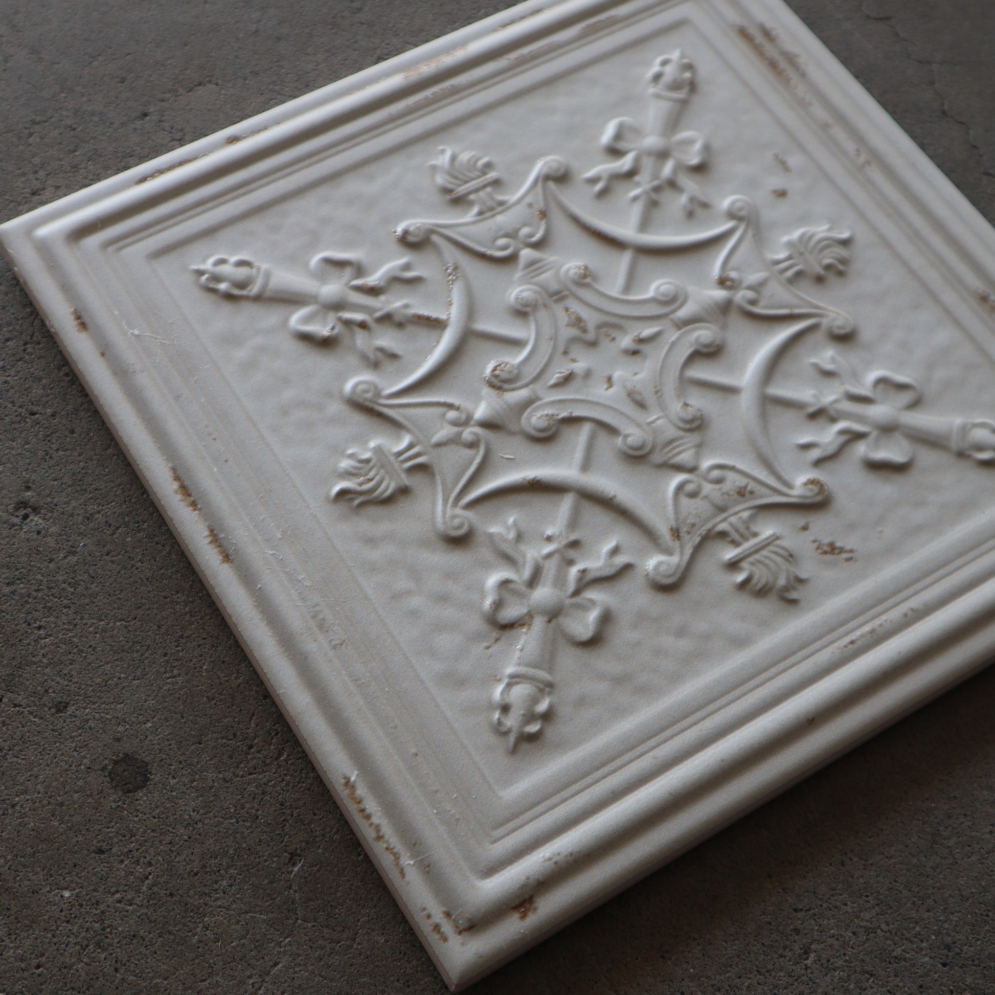 ■ 残っている柄(3種類) シリーズ特有の繊細な凹凸模様が印象的で、それぞれがアンティークタイルの意匠を思わせる佇まいを持っています。