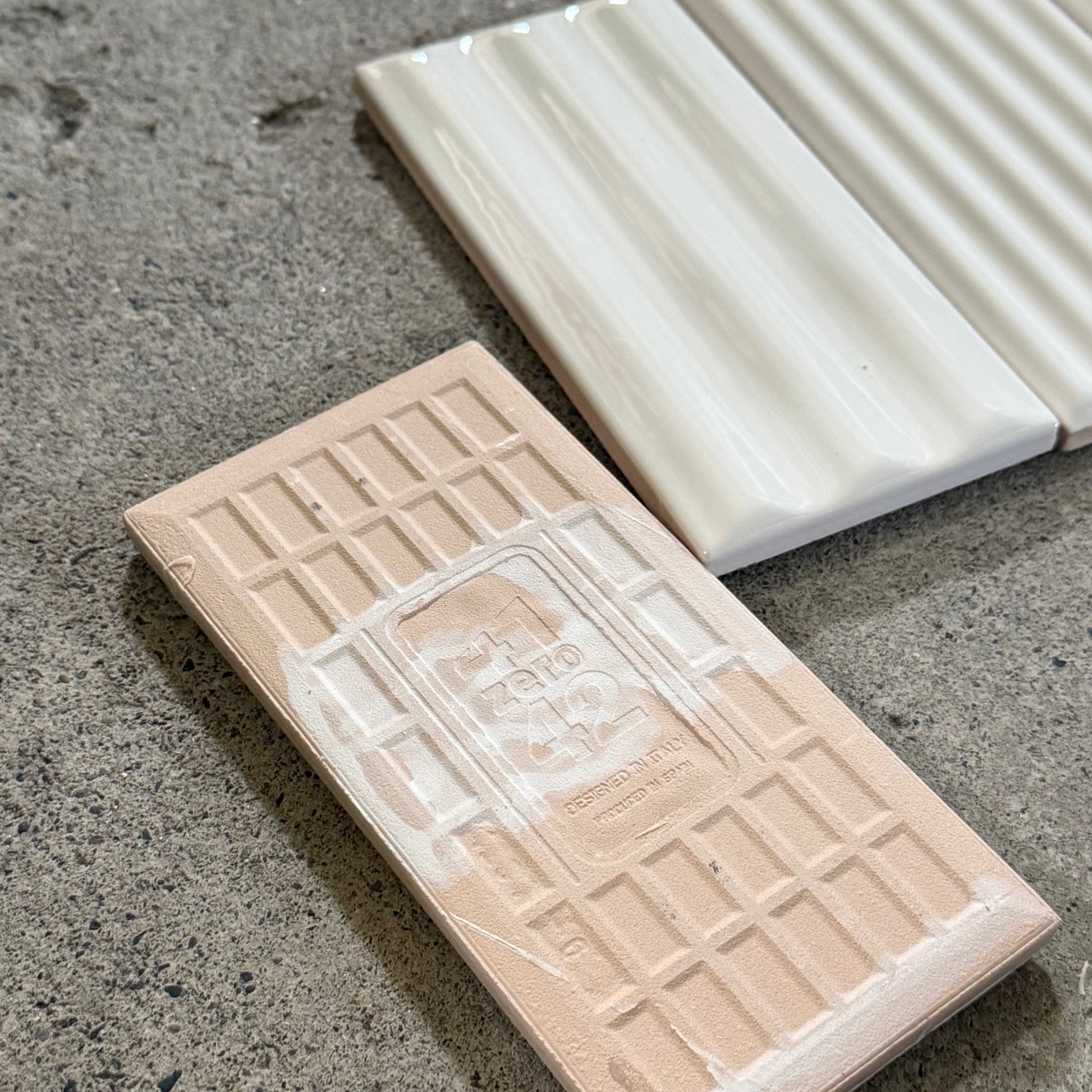 タイルの表面には「蝋」が付着しています。こちらは梱包時の割れを防ぐためもありますので、施工時には取り除いてください。